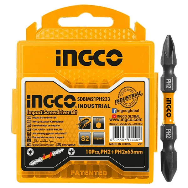 Ingco Impact Screwdriver bit PH2+PH2 65mm(2-9/16″) 10pcs/set