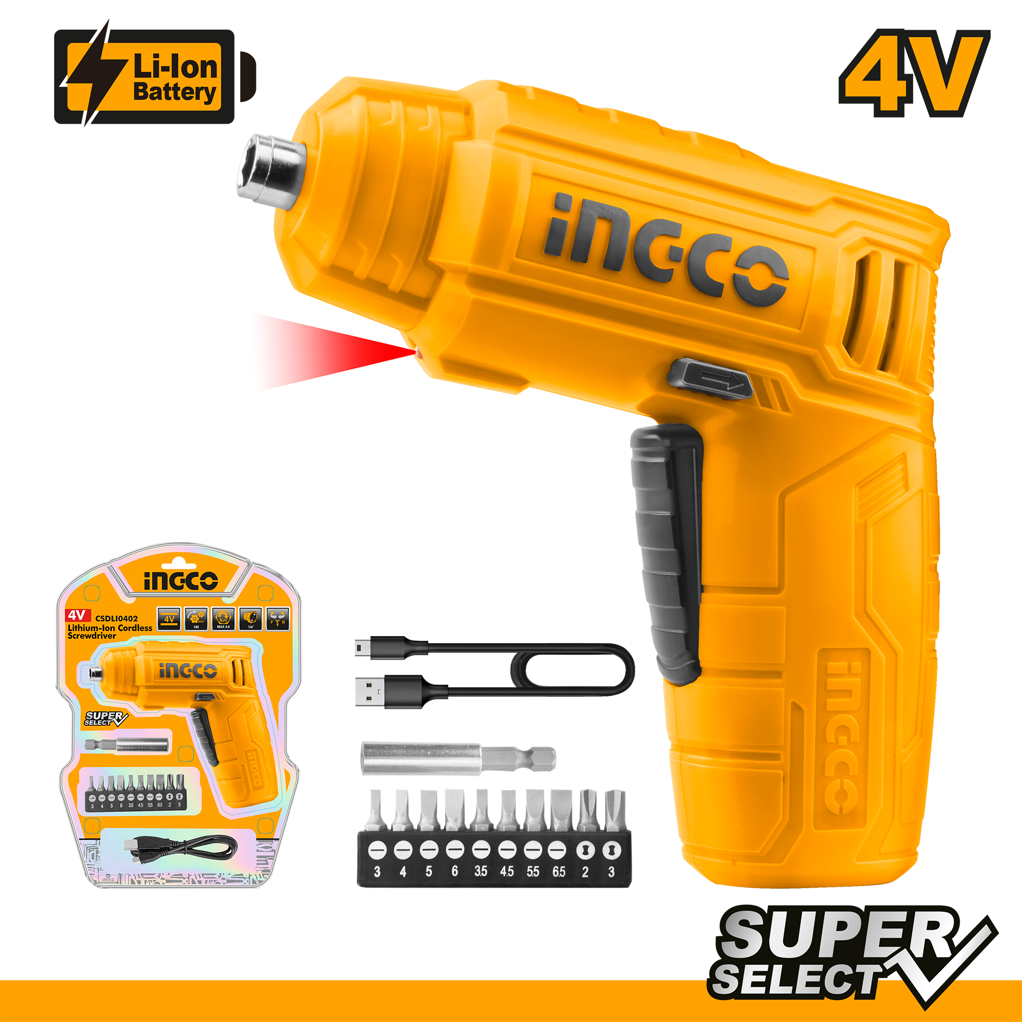 Ingco Lithium-Ion cordless screwdriver 4v